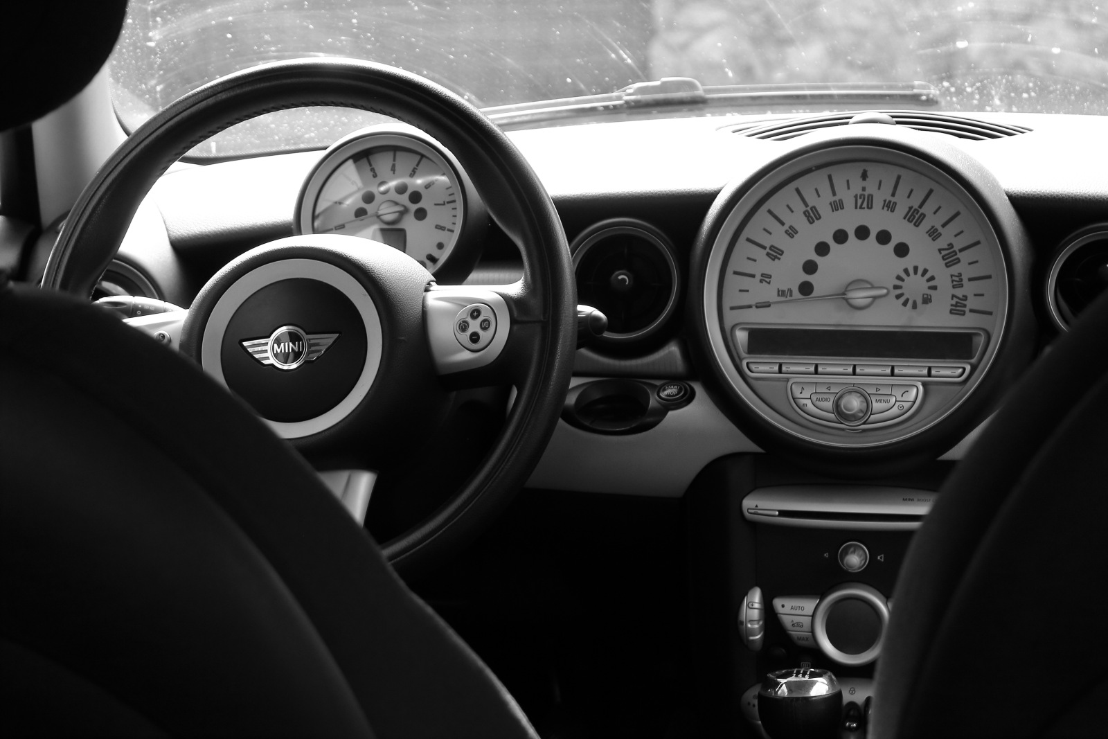 Interiér je typické Mini. Po usadnutí do pohodlných, nízko položených sedačiek vidíte pred sebou len volant a za ním otáčkomer. Ukazovateľ rýchlosti je uprostred palubnej dosky. Trochu zvláštne riešenie, na ktoré si však zvyknete rýchlo. Mini 3.generácie od tohto riešenia upustilo.