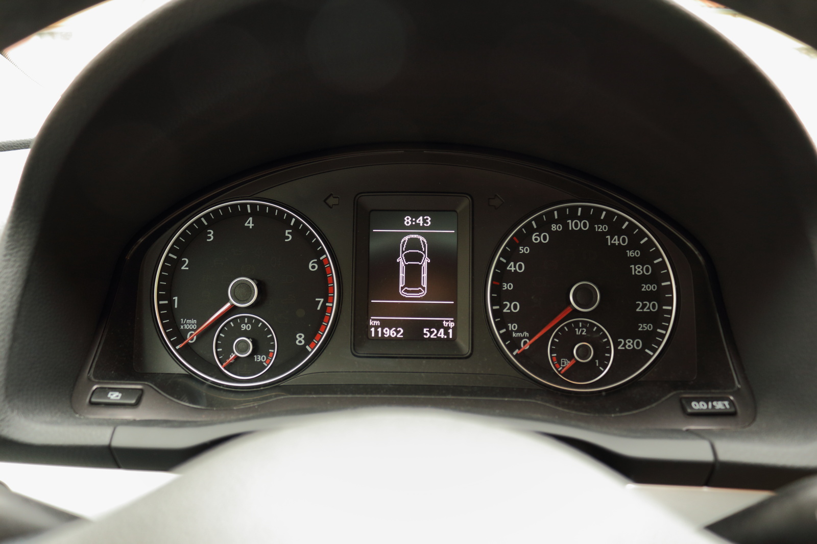 Výhľad dozadu je aj napriek malému zadnému oknu celkom slušný. Vďaka malým rozmerom 4257 x 1810 x 1404 mm s ním nebudete mať problém ani pri manévrovaní v malých priestoroch. Scirocco ponúka batožinový priestor s objemom 292 litrov (po sklopení sedadiel 755 litrov). Na malé kupé slušný výsledok. Nepoteší však malý vstupný otvor kufra. Ďalšia vec, ktorá nepoteší je otváranie kufra tlačidlom v interiéri vozidla! Z vonku ho jednoducho neotvoríte. Tento problém vyriešil až facelift v roku 2014.