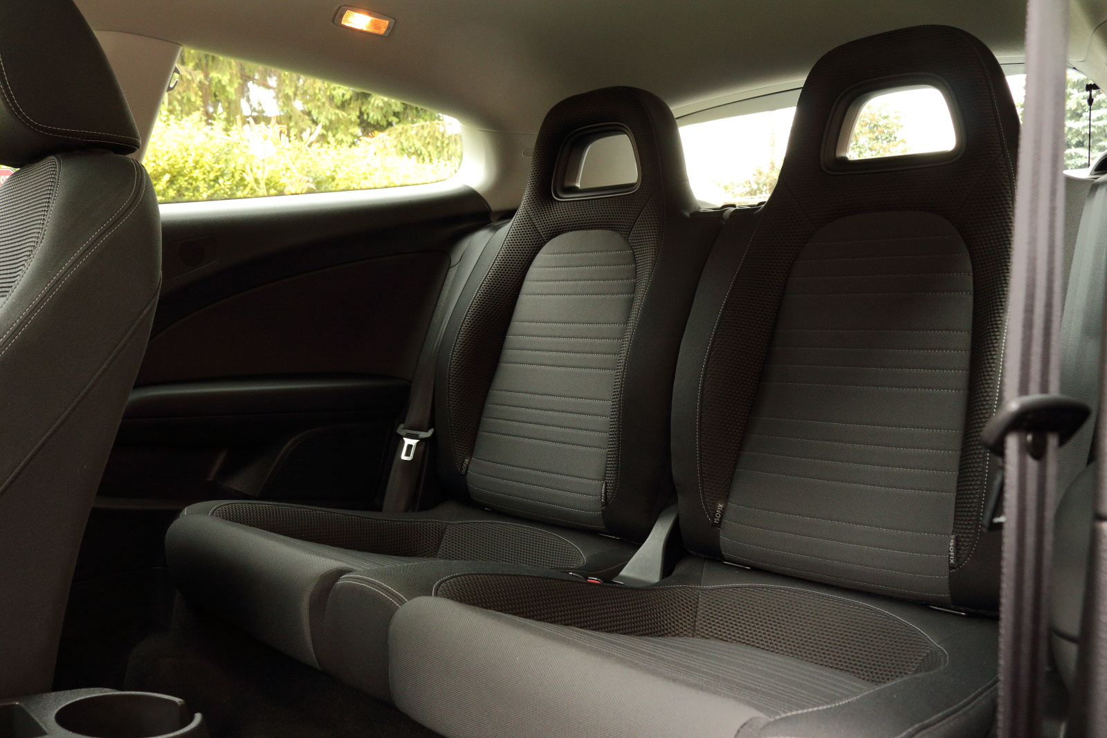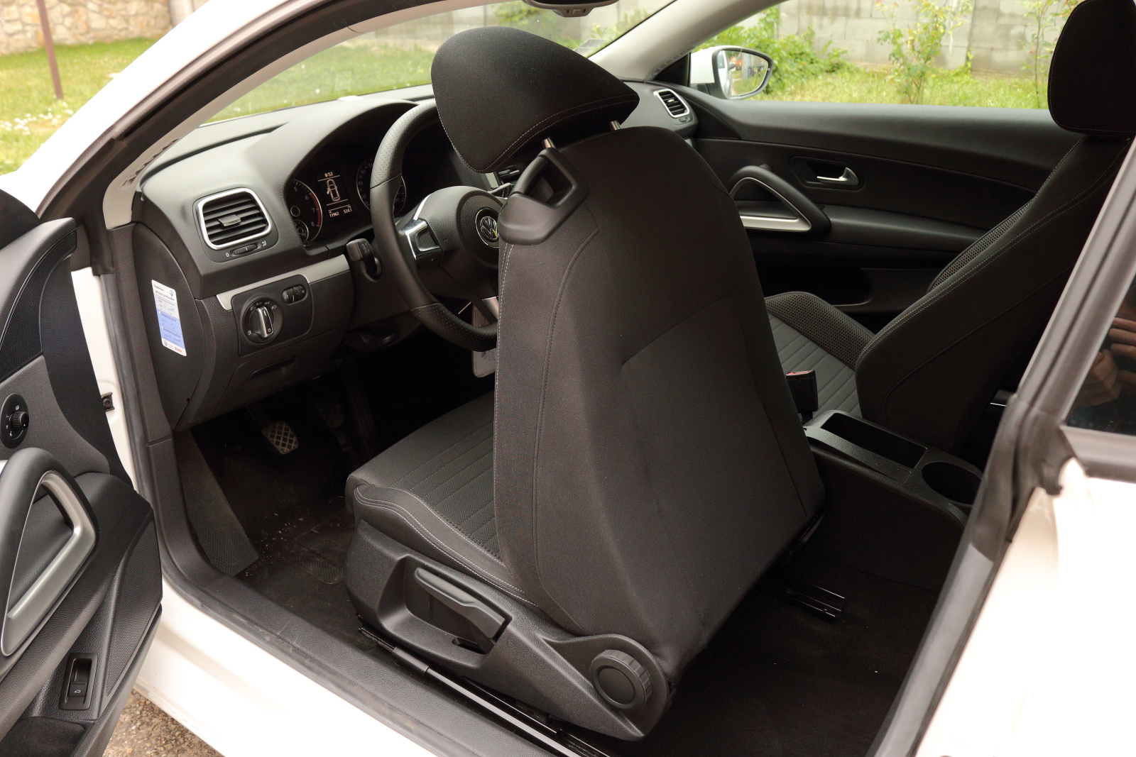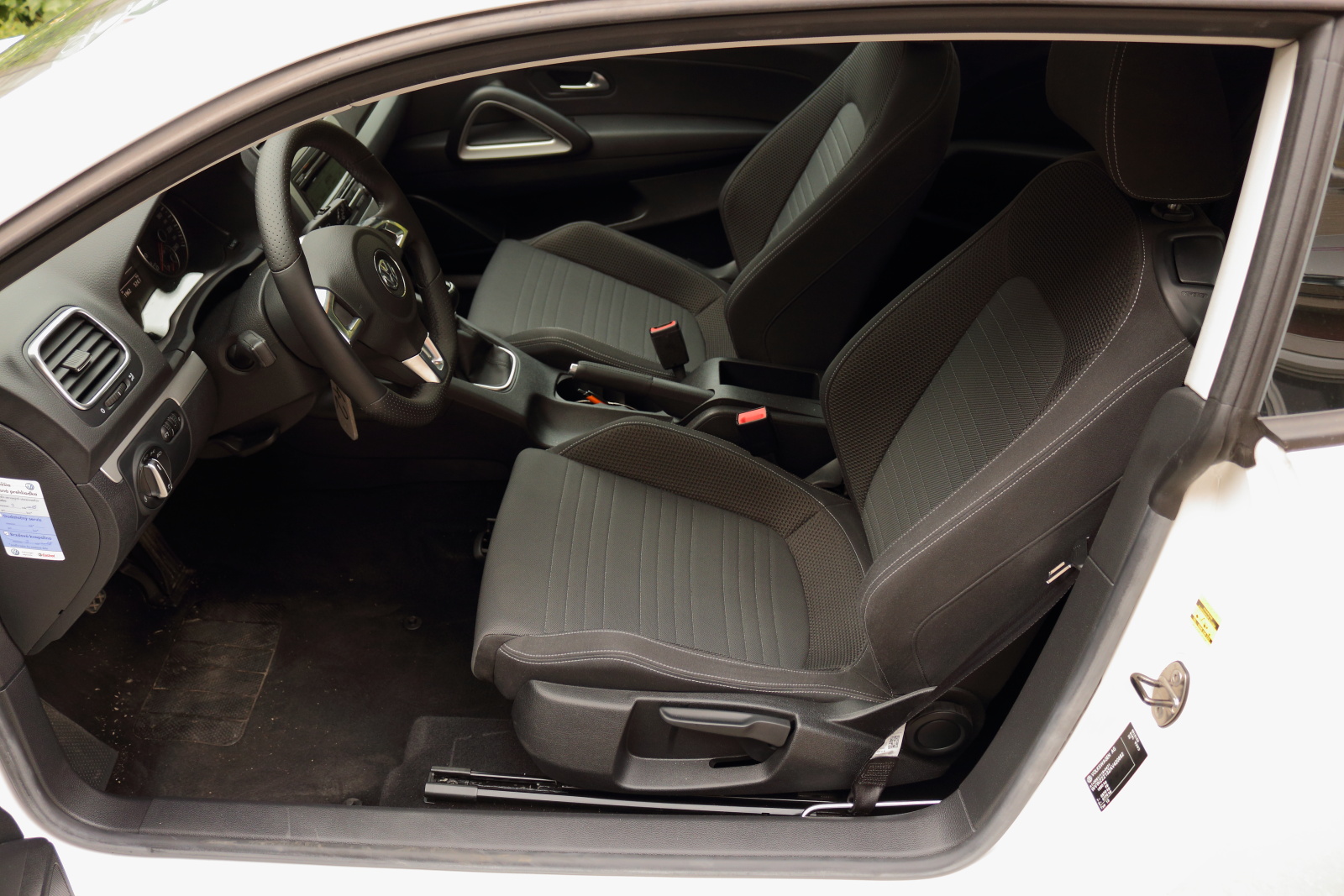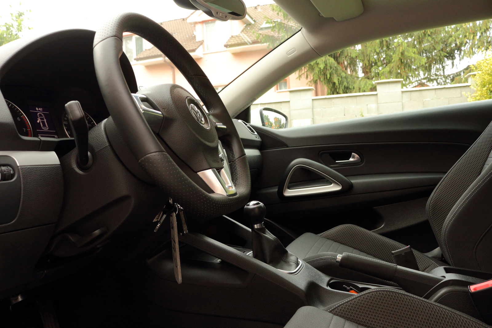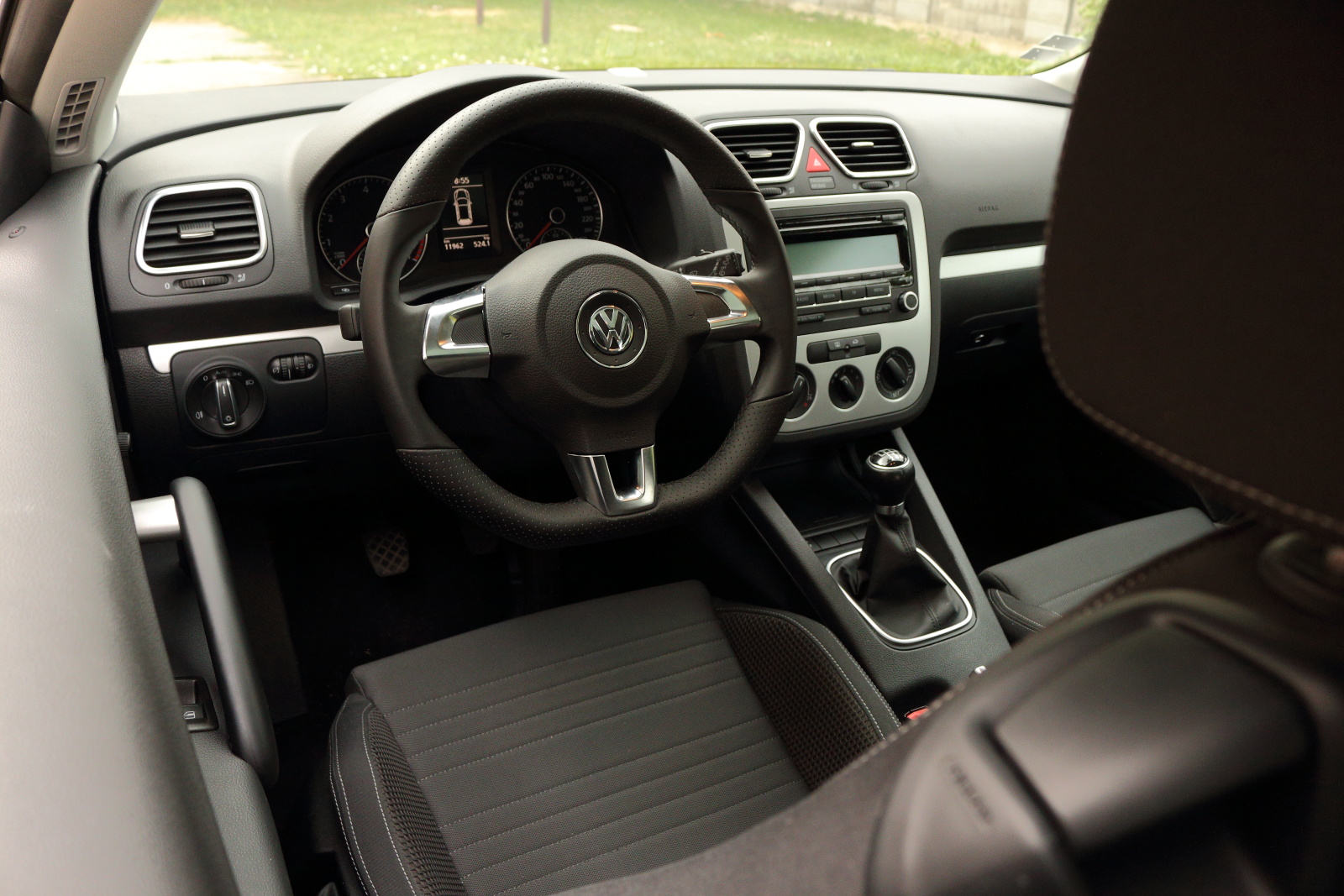 Dizajn interiéru je už typický Volkswagen. Nájdete tu kvalitné materiály a výborné spracovanie, ale aj dizajnovú nudu. Vo vnútri pôsobí ako Golf, lebo to je Golf. Konkrétne Golf 5, a na nerozoznianie od typu Eos. Z nášho pohľadu by sa kabíne hodilo výraznejšie odlíšenie od ostatných modelov, tak ako je tomu pri zovňajšku. Ergonómia pracoviska je úplne v poriadku, až na malý detail. Tým je umiestnenie ovládania sťahovania okien, človek si musí doslova vykrútiť ruku pri jeho ovládaní. Scirocco je primárne auto pre dvoch, nastupovanie na zadné sedadlá je preto krkolomné. Po usadení sa však situácia zlepšuje, vzadu nechýba dostatočný priestor na nohy a dokonca ani na hlavu (pri mojich 182 cm). V interiéri treba pochváliť sedačky so slušným bočným vedením, ktoré vedia podržať v zákrutách. VW ich dodával už v základe.